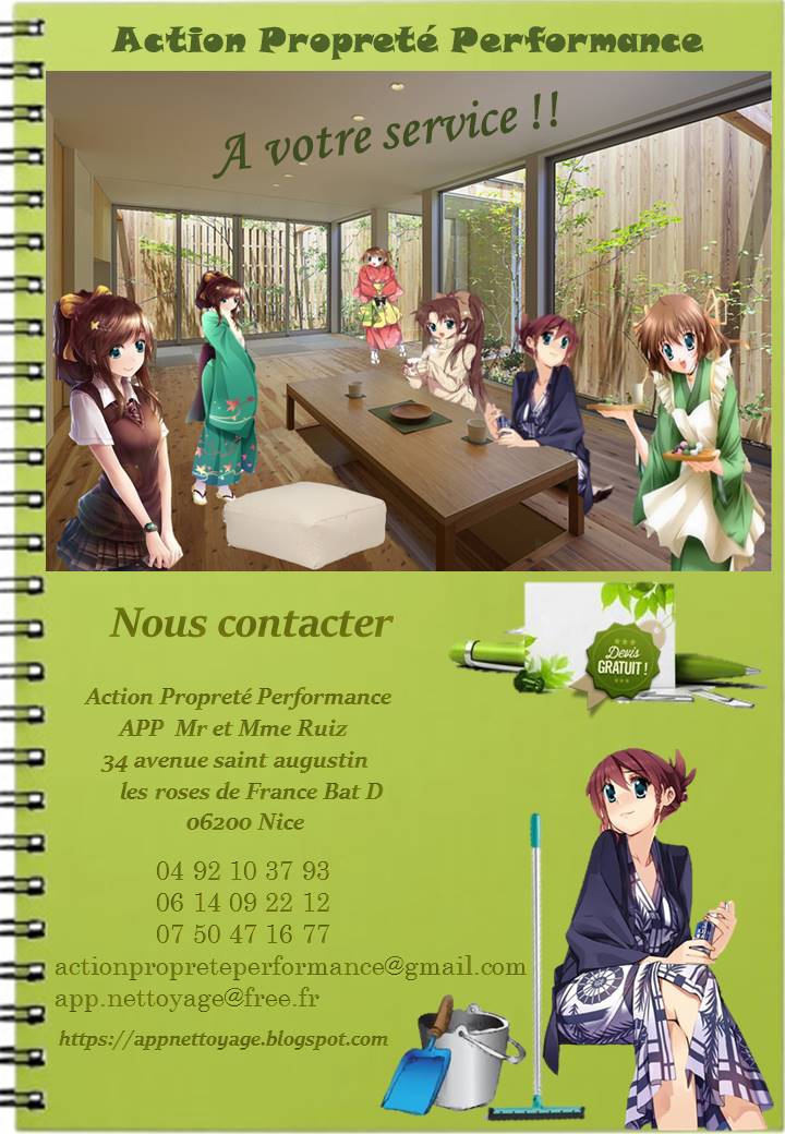 ACTION PROPRETÉ PERFORMANCE offre ses services sur l'ensemble du département. Nettoyage événementiel ou longue durée. Nettoyage villa, d'habitations privées. Nettoyage et entretien, de bureaux, magasins, restaurants. Entretien des tapis et moquettes. La gestion des circuits de linge propre et de linge sale. service conciergerie,checkin/checkout Un travail soigné, précis et de grande qualité. Devis gratuit